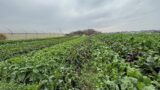 一つの畑にもいろんな種類が植えられていて、鎌倉野菜の七色畑と言われています。このレタスの一角でも右側はグリーンフリル、左側はハンサムレタス。サニーレタスやロロロッサも見えます。ところどころかけている部分は、すでに収穫された部分。