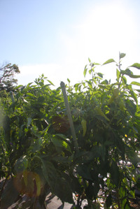 灼熱の太陽を浴びて、夏野菜の元気なこと。