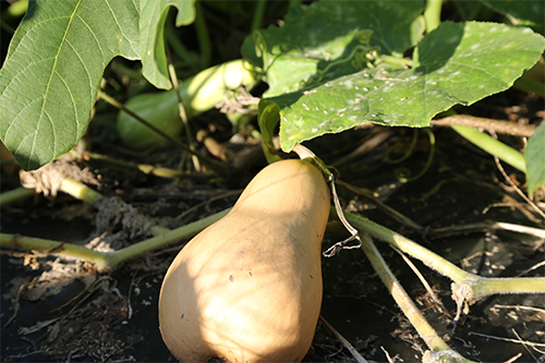 Img_8237山森さんちの畑で撮影した、シーズン終わりのバターナッツ。ちょっと変わった形でしょ?原産は南アメリカらしいのですが、日本でも、そのクリーミーな甘さが人気で、スーパーなどでも見かけます。バターナッツという名前は、その味を端的に表しているようで、一般的なかぼちゃよりピーナッツのようにスムースで、バターのように濃い感じがするんです。あまり大きくならないようで、一般的には500g~1kgの手ごろサイズ。色がピーナッツバターのような褐色…というより肌色でつややか。おまけに形がヒョウタンのお尻が割れたようで、キュートでセクシーなんです。