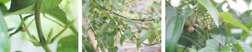 いろいろ考えたけど、やっぱりむかごに見える。自然薯の実で葉の付け根になり、秋になってツルが枯れる頃に地面に落ちる滋養たっぷりな野菜。サクサクしたお芋の食感と自然薯とおなじ味が好まれ、いためても、茹でても、ご飯と一緒に炊き込んでも美味で、薬膳 料理にもつかわれる。こんなに早い季節に、驚くほどの短時間でたくさん実るのは知らなかった。とがり気味のハート形の葉っぱの付け根に、房のように花が咲き、数日で実がたくさんなる・・・なんだか「多産」の象徴のようで笑ってしまう。こんなむかごは滋養タップリ!