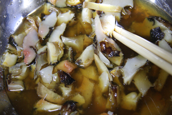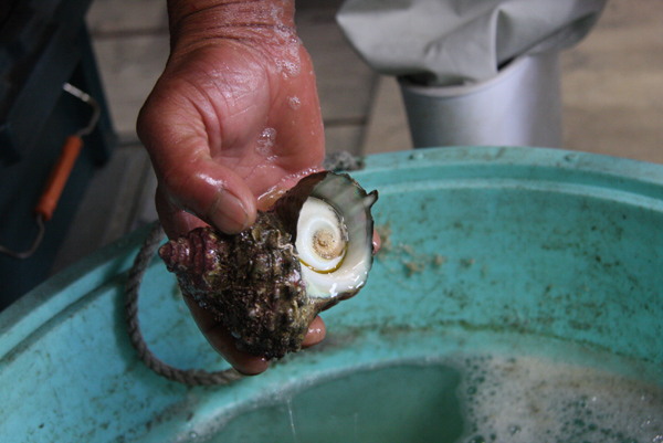 さざえ 海 2011年12月21日2020年02月14日 いいサザエがとれたよ!とまたまた漁師の平井さんからお声かけいただく。サザエ…たべた~い。 見せていただいたのは1個が大人のこぶしよりも大きいサザエ。立派な「良いサザエ」。 ということで、今回はサザエご飯に挑戦。 サザエをさっとゆでて、殻から取り出し、刻む。 醤油と酒と少々の塩と砂糖の汁に煮汁を加えたものに、1を加える。 水を気持ち少なめにしてたいたご飯に2を混ぜる。 5分ほどむらし、かき混ぜてサザエご飯の出来上がり。 ご飯に混ぜないでそのまま食べてもおいしいよ。