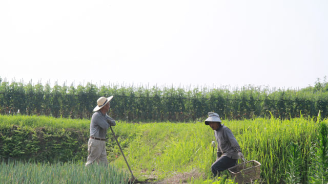 こんな中でどうやって野菜作りをしてるんだろう? と、7月末の早朝、畑にうかがった。朝ならきっと誰かいるだろうと思ったからだ。