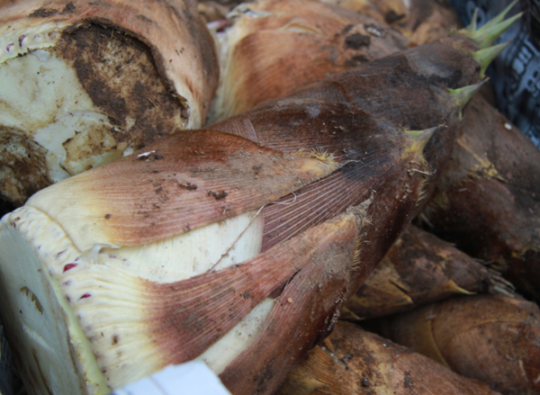 思わぬ収穫もあったようです。「まだ先のことだと思ってたけど、行ってみたらたくさん採れちゃった」と農家が顔をほころばせたのは竹の子。畑に生えるわけじゃなく、家の裏山の竹やぶなどに生えるので、農家でもその成長を日常的にウオッチしているわけじゃないんです。で、油断してたらこの大きさ。びっくりだったみたい。そういえば、冬の寒さが残っていたけど、ここ数日はイキナリ暖かくなったからね。
