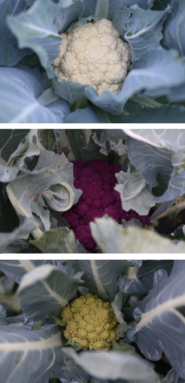 カリフラワー 畑の様子 2014年06月05日2020年02月05日 山森さんちの畑では、この時期最後のカリフラワーが大きく育っていた。 カリフラワーはブロッコリーと違って一つの株から一つしか実はできない。こんなに大きくてたくさんある葉っぱは、たいてい食べられることはない。 大きな葉っぱの中心には白いお姫さまカリフラワーがすくすく。 純白でしょ。 中にはこんな色の子も! 紫のカリフラワー 味は変わらないけど、ゆでると素敵な薄紫になる、オシャレっ子。 さらにはこんな形の子も! 強烈な形のロマネスク。でも、味は変わらない素直なカリフラワー。 みんな美人だ~。